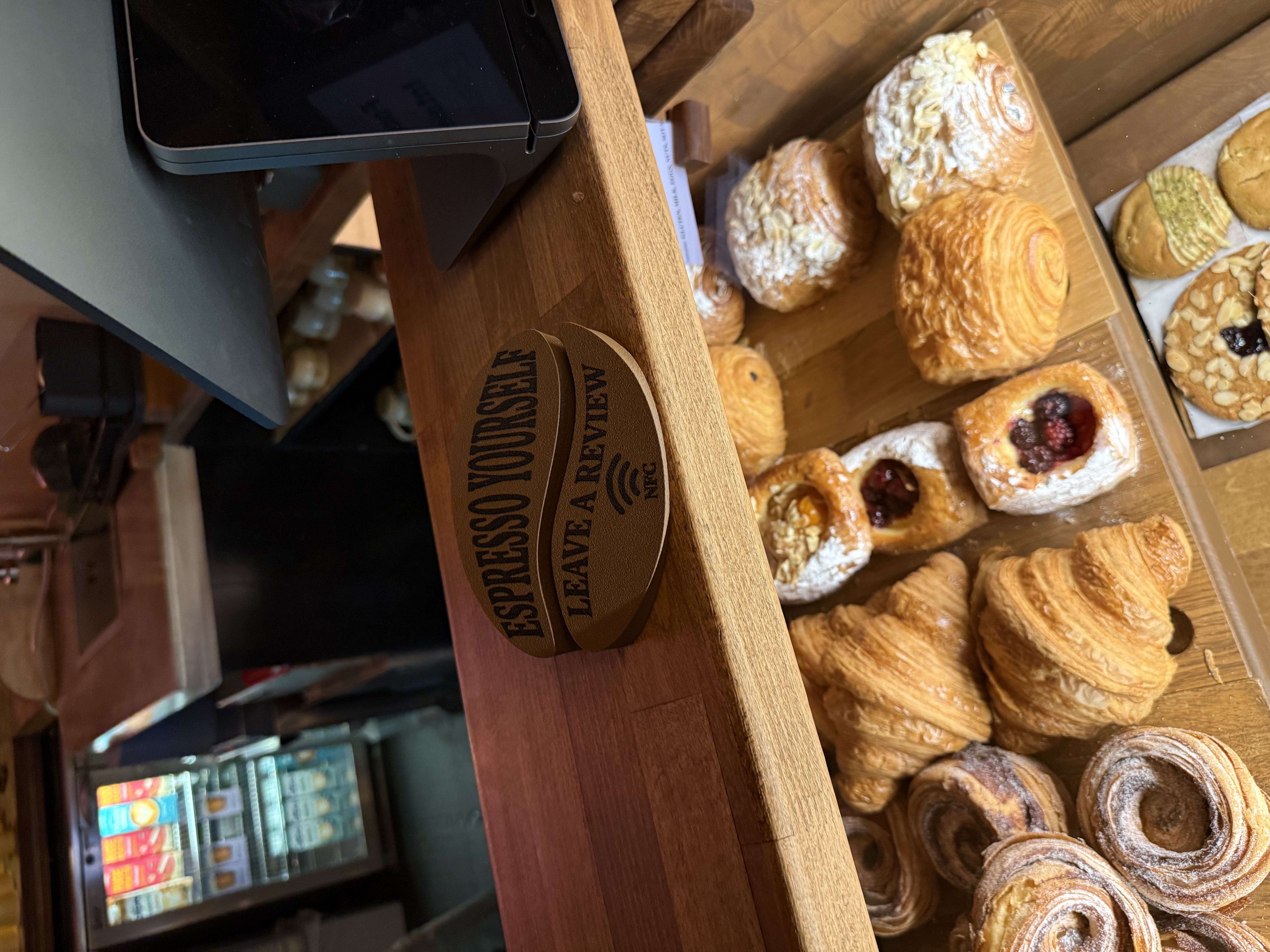 A countertop NFC stand that gets you more Google reviews. Unhappy customers get a direct line to you instead of going online.
